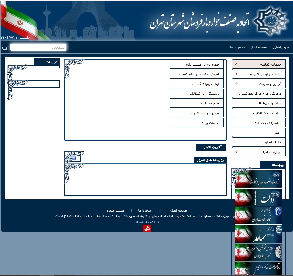 طراحی سایت جدید اتحادیه صنف خواربار فروشان شهرستان تهران